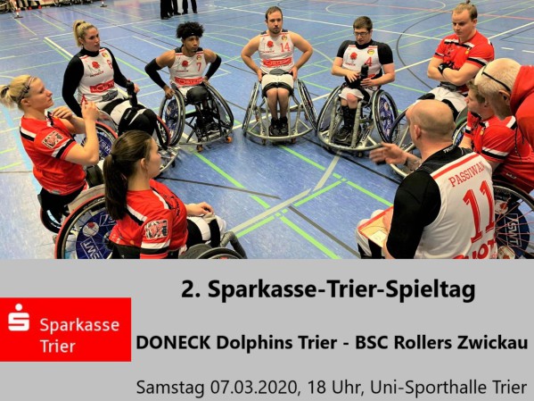 Mit einem Doppelspieltag starten die DONECK Dolphins Trier am Wochenende 07./08.03. in die Playdown-Runde. So werden am Samstag (18 Uhr) am 2. Sparkasse Trier-Spieltag zuerst die BSC Rollers Zwickau zu Gast in der Unisporthalle sein, bevor dann Sonntag um 13 Uhr direkt das zweite Playdown-Spiel gegen die RBB München Iguanas folgt.