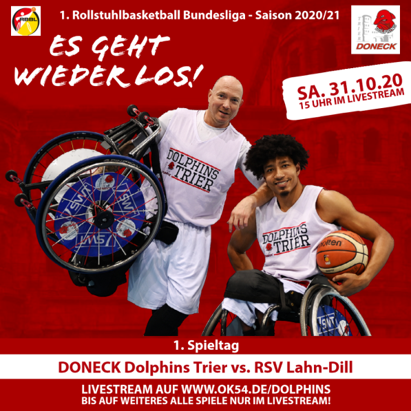 Am Samstag, 31.10. um 15 Uhr starten die DONECK Dolphins Trier gegen den RSV Lahn-Dill in die neue Saison. Nach der Saisonverschiebung um einen Monat und den zuletzt stark steigenden Infektionszahlen war lange nicht klar, ob der Saisonstart möglich sein wird. Dolphins-Coach Dirk Passiwan und sein Team versuchen mit der Situation so gut wie möglich umzugehen: „Es wird eine schwierige Saison, mit vielen Unvorhersehbarkeiten. Wir haben versucht uns gut auf die Situation des ersten Spiels einzustellen: Verschiebung der Saison, Umzug in die Arena, ohne Zuschauer und auch jetzt ist immernoch relativ unklar, wie lange wir spielen können... Aber wir sind gut vorbreitet.“