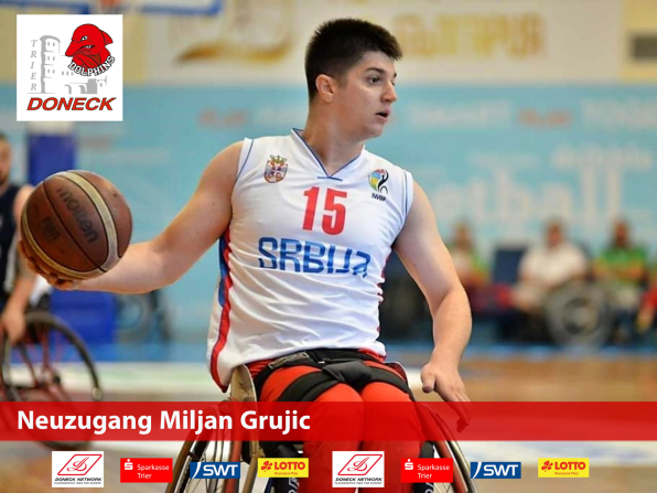 Die DONECK Dolphins Trier haben den 28-jährigen Miljan Grujic verpflichtet. Der serbische Nationalspieler war zuletzt im italienischen Trient unter Vertrag und hat vorerst für ein Jahr bei den Dolphins unterschrieben. Der Bedarf im hochpunktigen Bereich war groß, da Nathalie Passiwan noch einige Monate in der Babypause ist. Diese Lücke soll Grujic kurzfristig schließen. Zwar wird er sich erst an das höhere Tempo in der deutschen Rollstuhlbasketball Bundesliga gewöhnen müssen, er bringt jedoch auch noch viel Entwicklungspotential mit.