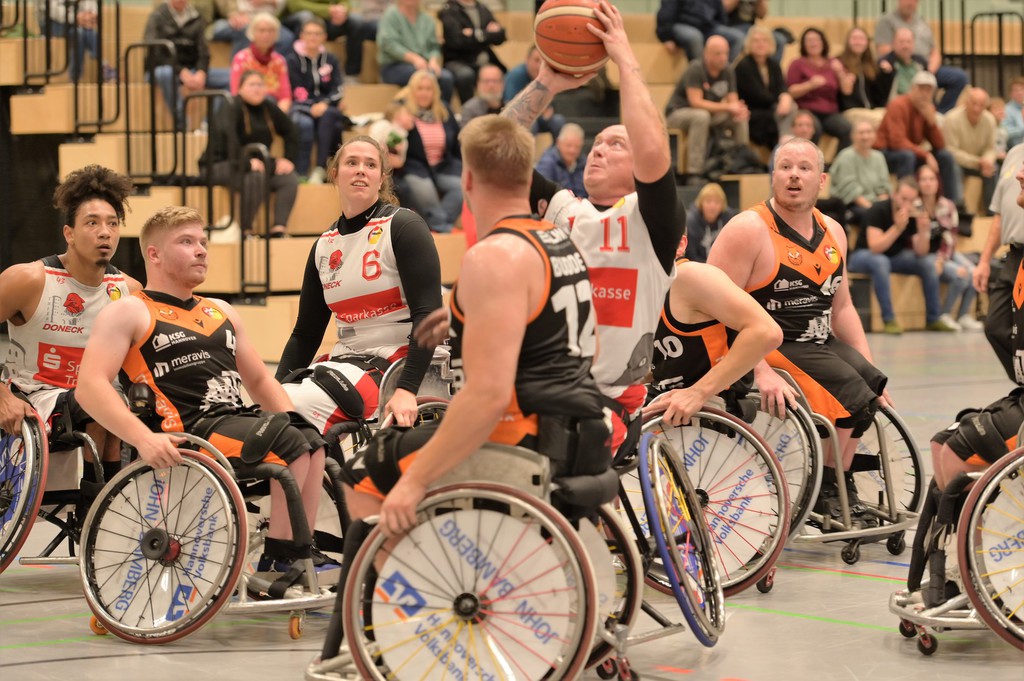 wechselte und das Team von Dirk Paßiwan zwischendurch mit neun Punkten vorne lag. Der Spielertrainer selbst hatte seine Mannschaft zu Beginn mit zwei Dreiern, denen noch drei weitere folgten, ins