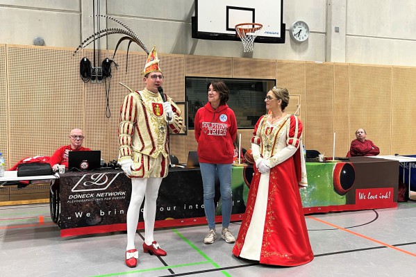 Ganz besonders bedanken wollen wir uns auch beim Stadtprinzenpaar Prinz Michael II. und Prinzessin Bianca I., die mit ihrem Hofstaat zu Gast waren und den Dolphins über 40 Minuten die Daumen gedrückt haben. In der Halbzeit durften die beiden dann auch selbst an den Ball und unter dem Jubel der Zuschauer zeigen, was sie beim Freiwurfschießen draufhaben. Anschließend bekamen die beiden Vorsitzenden der Dolphins, Otmar Paßiwan und Andreas Ebertz noch den Orden des Prinzenpaares verliehen. Wir sagen ganz herzlich danke für den tollen Besuch!