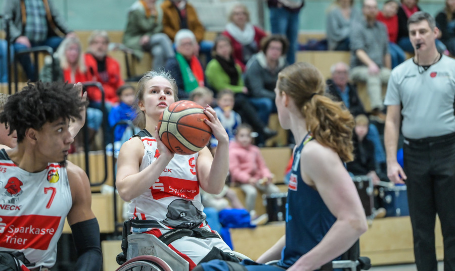 Die Zuschauer, die trotz der Karnevalsfeierlichkeiten in und um Trier in die Halle gekommen waren, wurden für ihre Kommen mit einem guten Spiel ihrer Delfine belohnt. In der Halbzeit freuten sich alle über den tollen Auftritt der Kindergarde des KV Livia Leiwen, bei dem die Dolphins sich nochmal herzlich fürs Kommen bedanken! Nach dem Spiel durften die kleinen Tänzerinnen dann auch die Sportrollstühle der Spieler und hatten viel Spaß bei ihren ersten Versuchen im Rollstuhlbasketball.