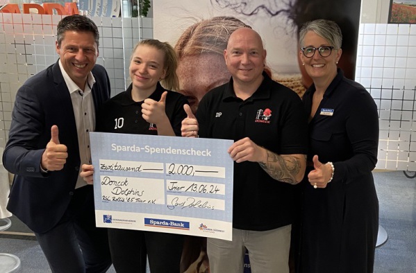Auch in diesem Jahr unterstützt die Sparda-Bank Südwest die Vereinsarbeit der Dolphins mit einer Spende.